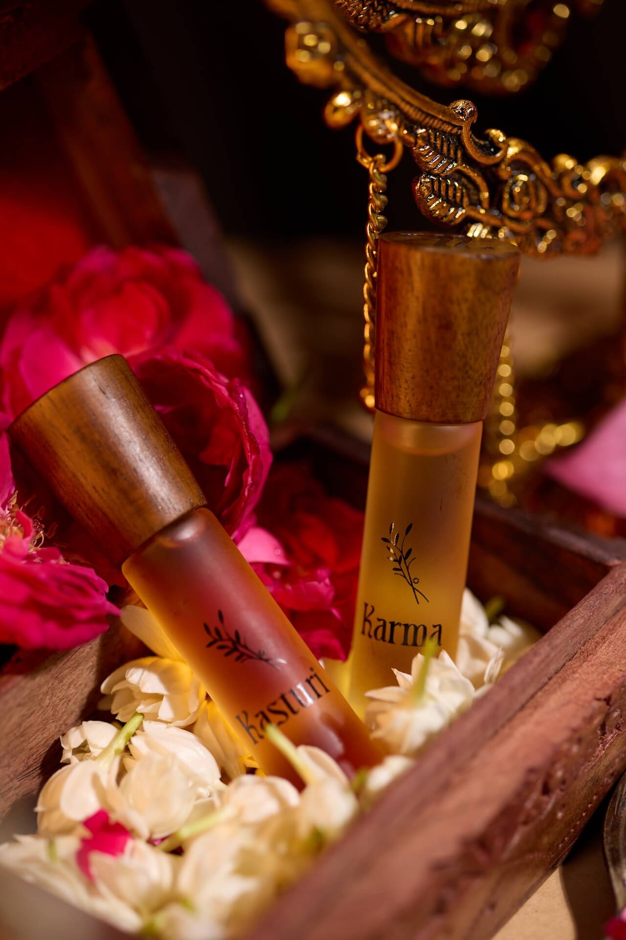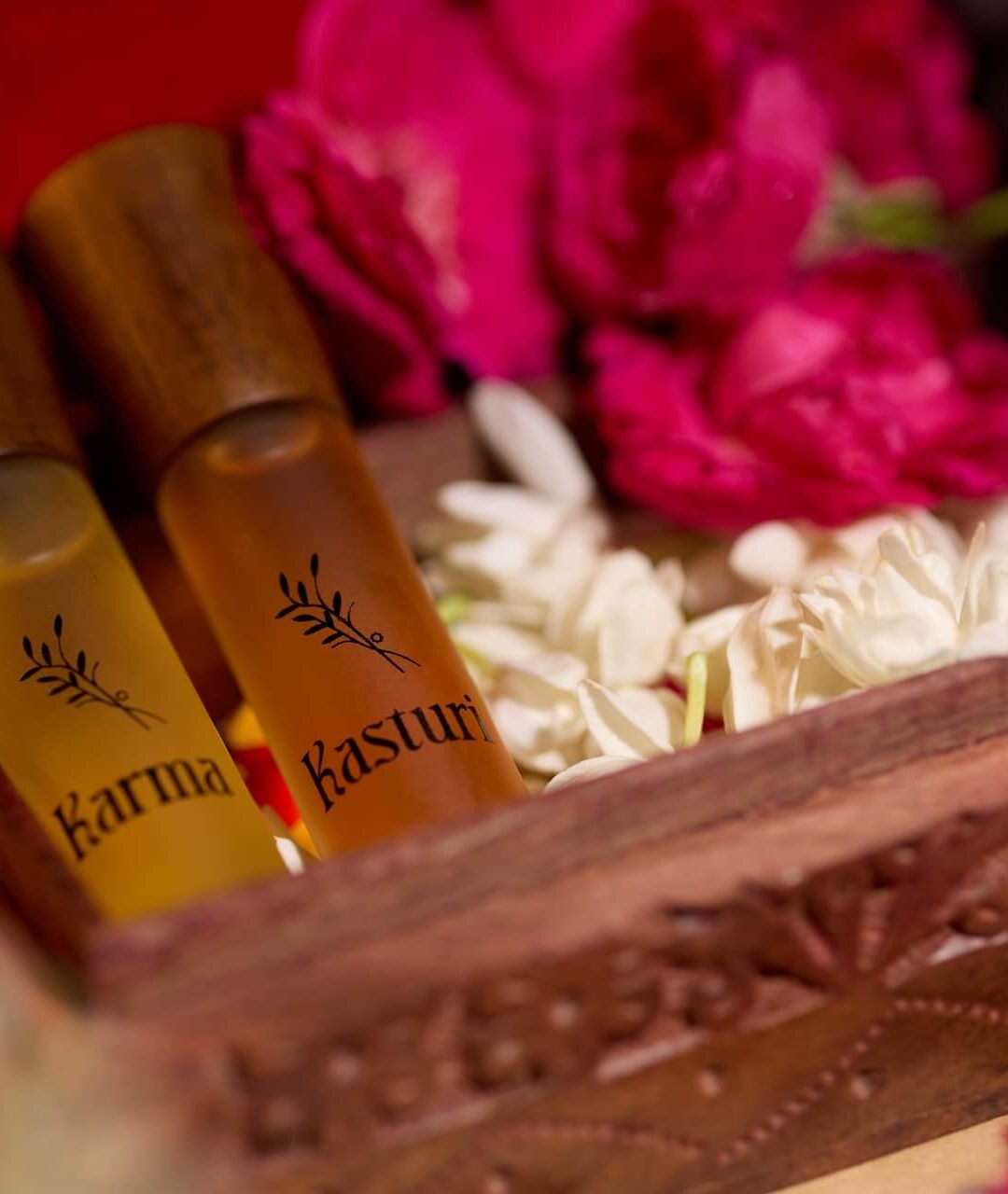 Zikrr brings together Karma – our bold, night-ready ittar with notes of black pepper, cardamom, and woody musk and Kasturi, a timeless blend of oudh, lavender, patchouli, and saffron, deeply rooted in tradition.